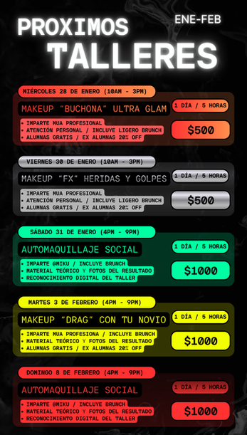 A continuación se encuentran las fechas para nuestros cursos y talleres profesionales. Revisa el calendario y elige la fecha que te convenga.
